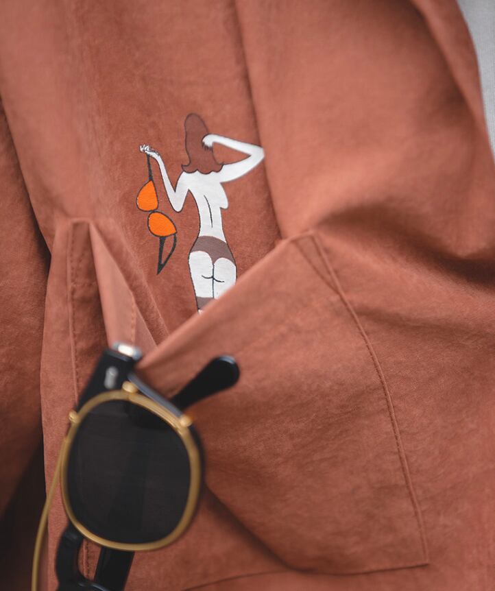 ピンナップガールのチラ見えにはポケットでさり気なく隠し細やかな仕掛けのある一枚です。