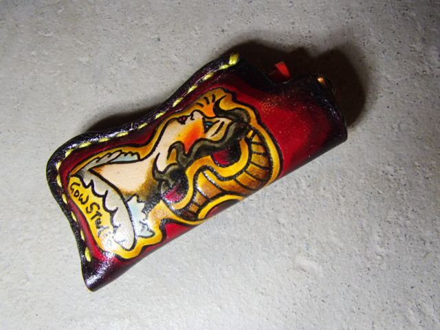 本革を使用し裁断、縫製、絵型の書き入れ、ペイントと全てハンドメイドで作り上げられた商品です。