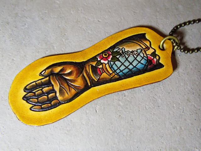 本革を使用し裁断、加工、絵型の書き入れ、ペイントと全てハンドメイドで作り上げられた1点物の商品です。