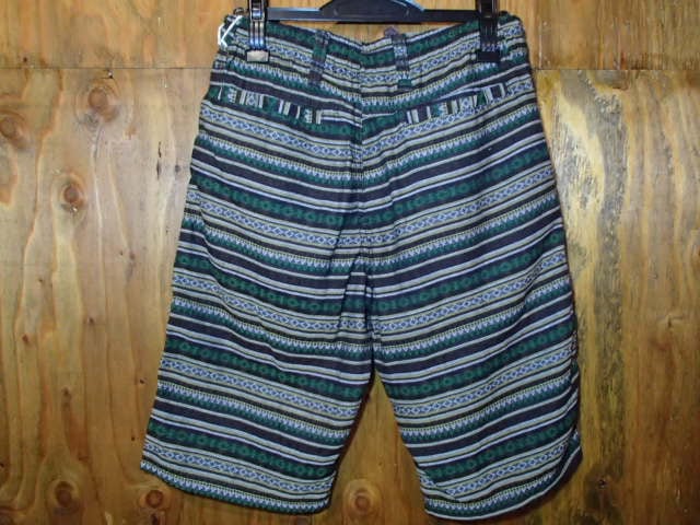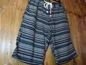 シルエットは太すぎず細すぎず、生地感はさらりとした麻のような涼しげでウエストはゴム+ひも+ベルトループ。